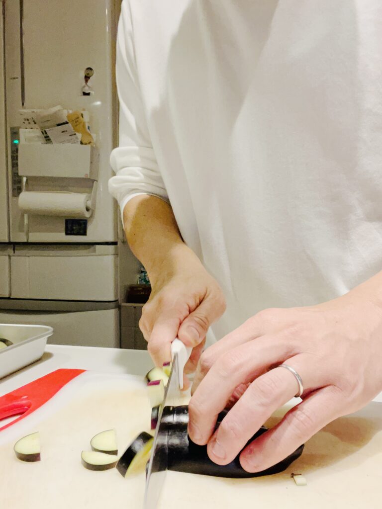さて。茄子を切る。