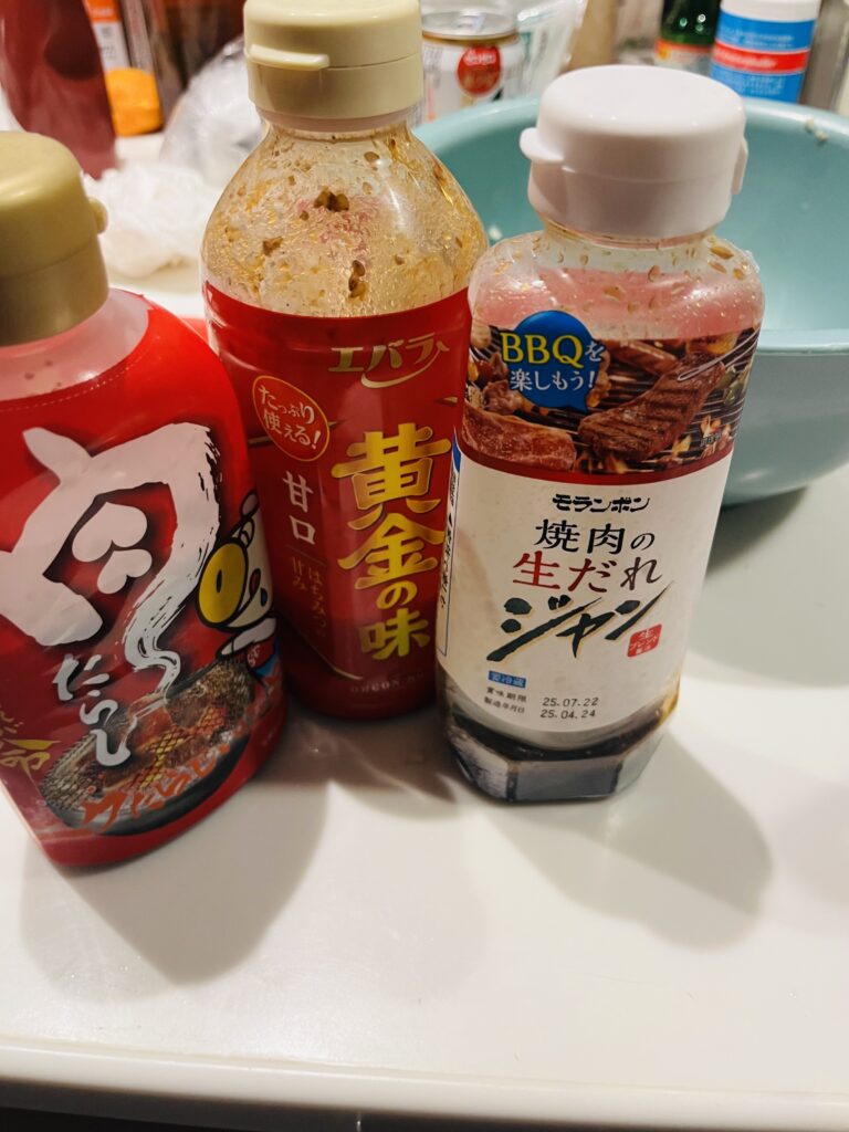 冷蔵庫から余っていた『焼肉のタレ』をジャンジャン出して行きましょう。