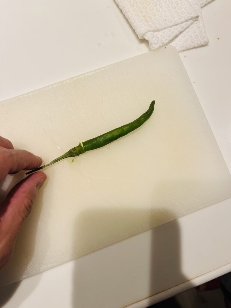 荒川は辛口大好きなので、青唐辛子でも刻んでおきましょう。