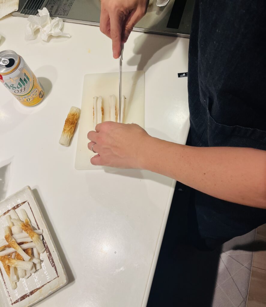 荒川は1本のちくわを縦に8等分にします。